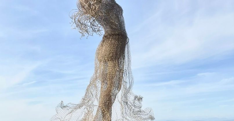 Hands Up. Standing 88 inches tall and painted in hammered gold, Felicity was inspired by movement, freedom, and the joy of reaching skyward—an embodiment of uplifted spirit and graceful strength.